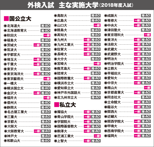 現在急増中の外検入試。以下に、その中の主な大学を紹介しよう。