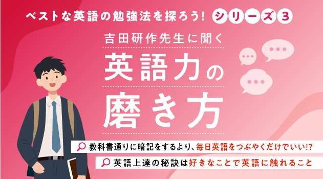 英語の勉強法について、これまでいくつか紹介してきました。今回は、英語教育に長年携わってきた上智大学名誉教授・吉田研作先生に話を伺いました。現在も動画や講演会などさまざまな場所で発信を続けている吉田先生が、きちんと続ければ誰でも着実に上達することが可能な英語の勉強法を教えてくれます。