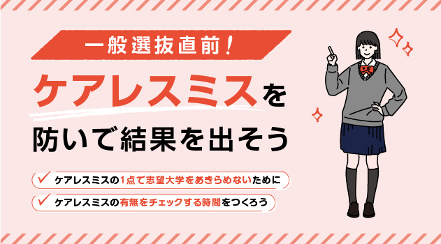 試験でのケアレスミスほどくやしい結果はありません。「わかっていたのに」と思っても後の祭りです。それが大学入試ならなおのこと。今までの勉強の成果を無駄にしないためにも、自分のミスのクセを見直し、気を配ることでケアレスミスとおさらばしませんか?