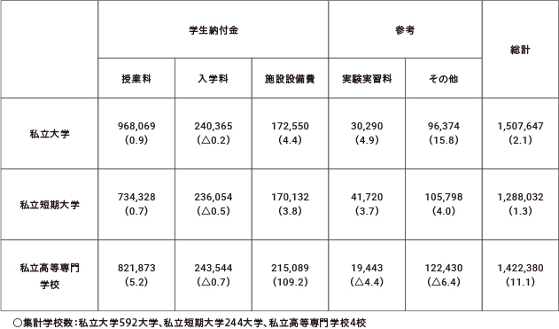 私立大学等の令和7年度入学者に係る学生納付金等調査結果について(文科省調べ)