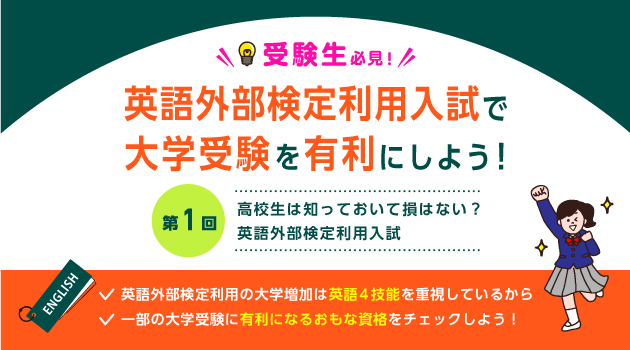 新学年がスタートしました。「そろそろ大学受験を意識しないと…」と感じている人も多いのではないでしょうか?そんな新高校3年生はもちろん、新1、2年生にも知っておいてほしい一部の大学において受験を有利にする英語外部検定利用入試についてお伝えします。今回は、最新動向をふまえて「英語外部検定利用入試」について詳しく解説します。